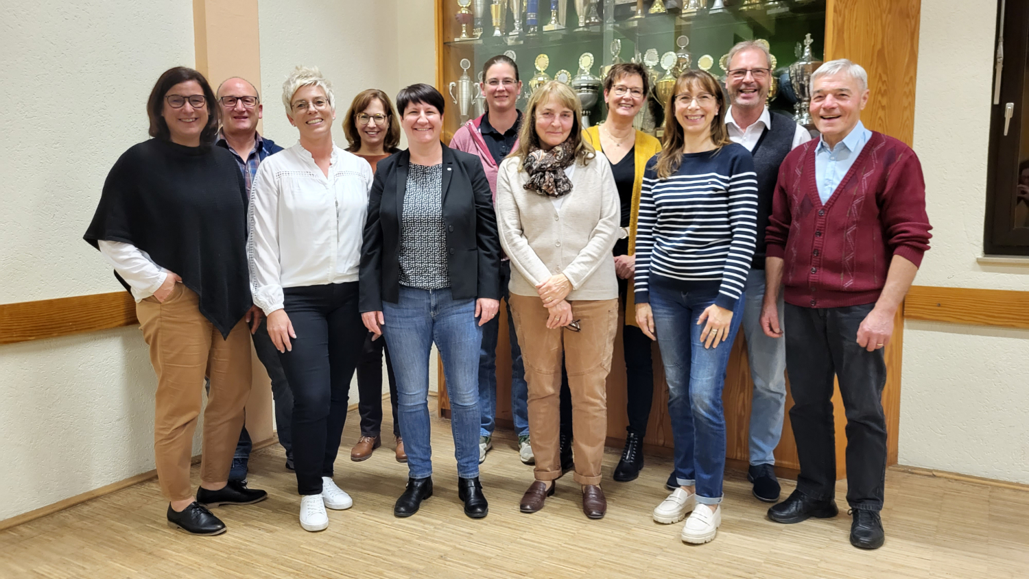 Der aktuelle Vorstand des Gesangverein Harmonie 1859 Gambach (seit 10.11.2023): Reihe hinten von links nach rechts: Markus Wächter, Simone Sacher, Franziska Hofmann, Petra Straka, Roland Straka. Reihe vorne von links nach rechts: Dorothee Weckmann, Vorsitzende Meike Häuser, Evi Weckler, Ulrike Wagner, Dani Groß, Berndt Leitner.